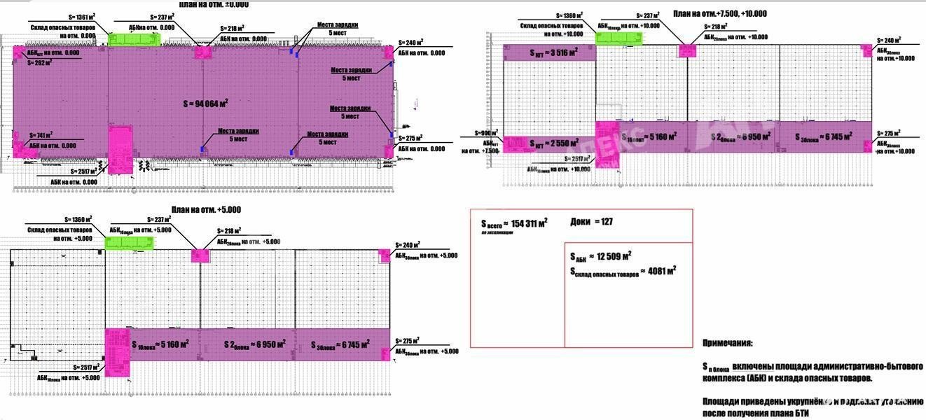 В состав объекта входят складские помещения, включая ангарно-бытовые части, а также три контрольно-пропускных пункта. Здание имеет габариты 579 на 212 метров с шагом колонной сетки 12 на 12 метров. Высота до низа строительных конструкций составляет 12, 9 метра. Допустимые нагрузки на пол 8 000 кг/м².