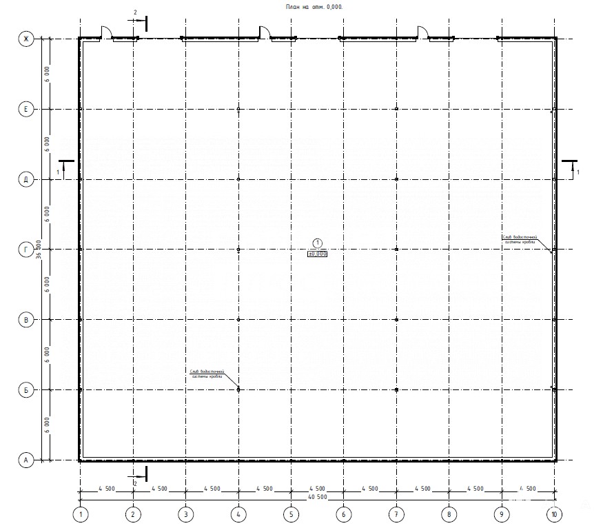 - Размеры коруса 41х36м. Рабочая высота 5, 5м. Ворота секционные 3, 6м(ш)х4, 2м(в).