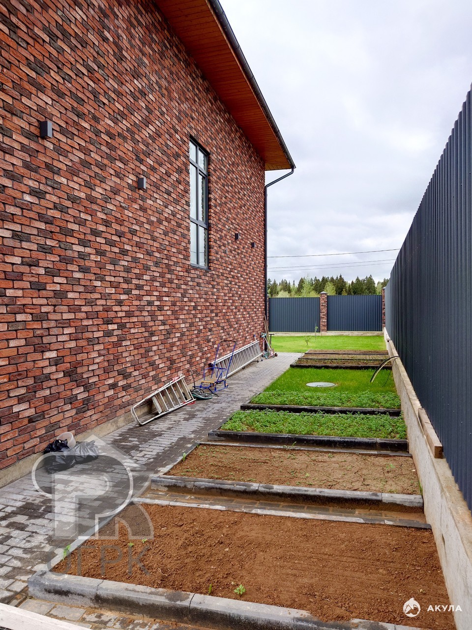Фасад - кирпич ручной формовки. Стены - керамзитобетонные блоки + утеплетиль, толщина стен 50 см, фундамент ленточный, окна-Rеhаu Dеlight-Dеsigh с мультифункциональным остеклением, кровля-металлочерепица.
