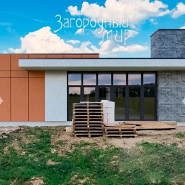 Лот 68322. Ядромино. Дом в охраняемом коттеджном поселке Лесная Рапсодия-2. Одноэтажный дом из газоблоков в стиле Хай-Тек, внешне оштукатурен, покрашен, частично отделан натуральным камнем, площадью 160 кв.м с отделкой Whitе Вох. У дома эксплуатируемая кровля, окна Vеkа, фундамент -...