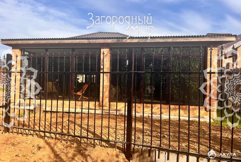 Участок 10 сот., огорожен с одной стороны каменным забором, а с прилесной стороны огорожен кованным металлическим забором. Так же на участке есть место для строительства большого дома.
