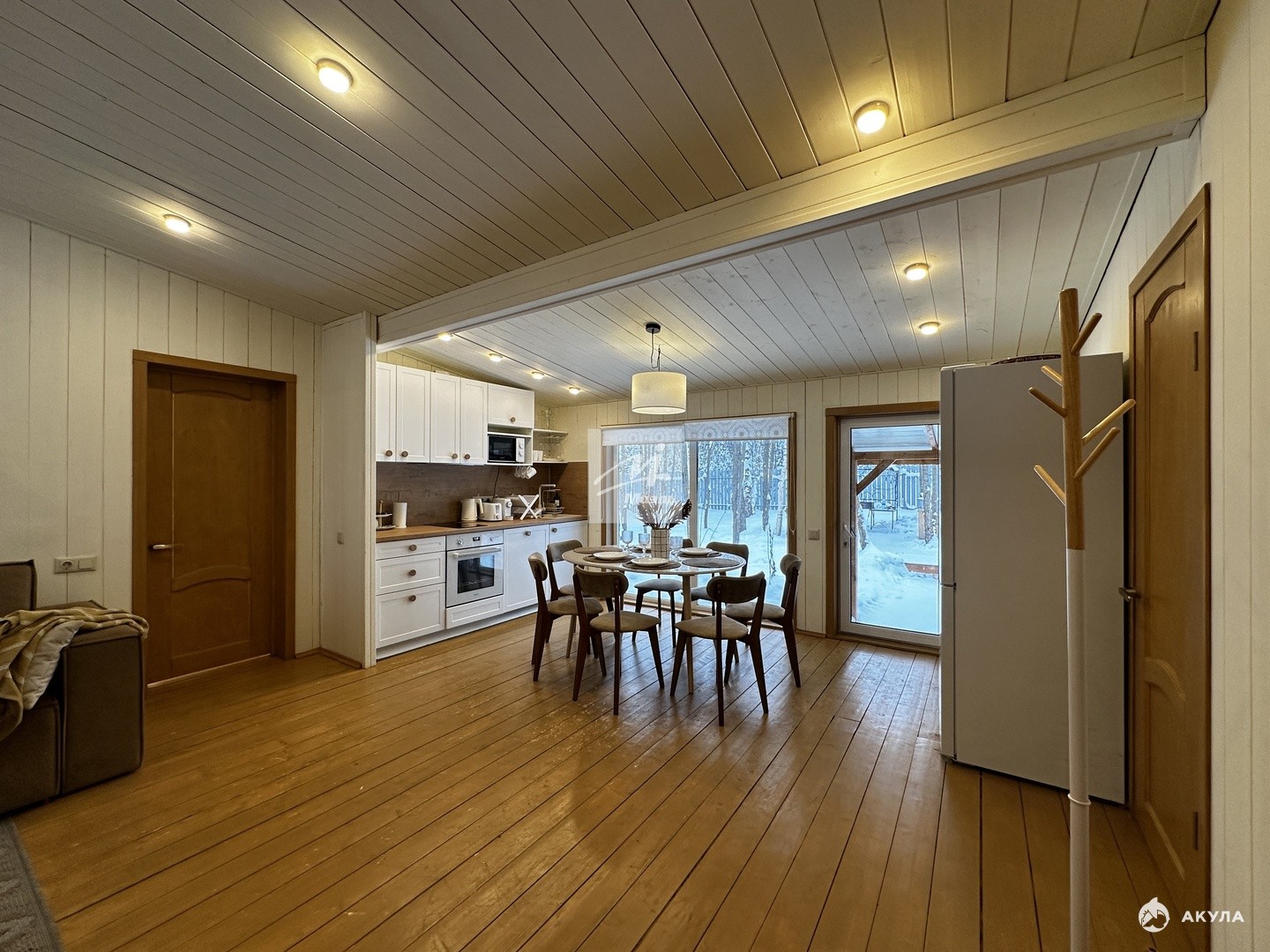 Дом: Просторный коттедж общей площадью 110 м² выполнен в современном стиле и состоит из трёх просторных спален и светлой гостиной. Каркасная конструкция обеспечивает отличную теплоизоляцию и экологичность. Внутреннее пространство оснащено необходимой мебелью, создающей атмосферу домашнего тепла и комфорта.