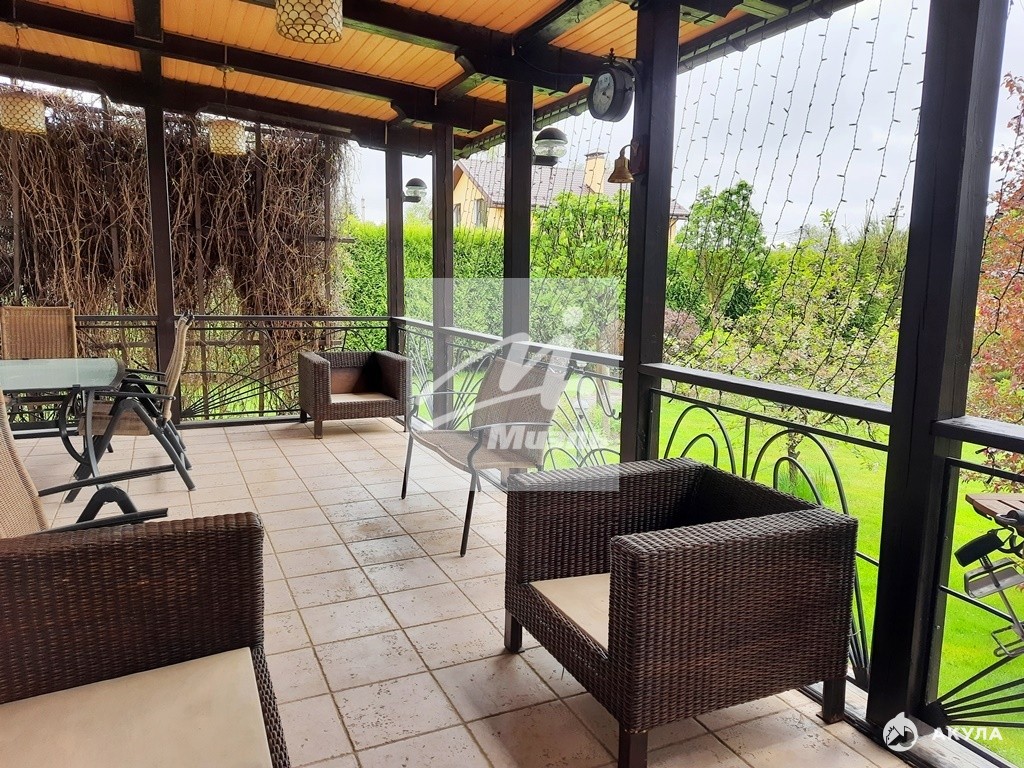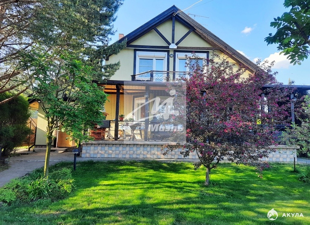 Участок 20 соток, (фактически 25) просто утопает в зелени; очень много декоративных , лесных и садовых деревьев, кустарники, цветники небольшой прудик с водопадом, газон с дорожками и фонариками. в Дальней части участка, навес на две машины, второй въезд на участок, огородик, две теплицы.