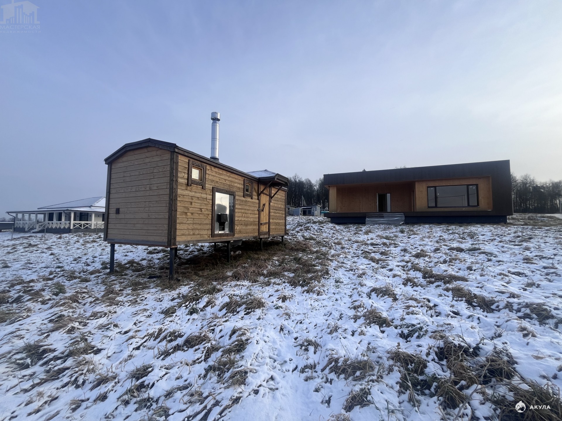 (Исх.514251) Готовый каркасный современный дом 114 кв.м. с террасой и банькой в Истринском районе, в деревне Синево.