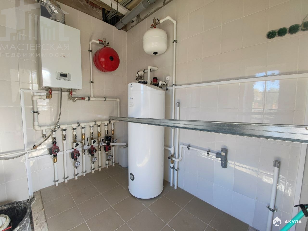 Дом возведен с соблюдением всех строительных норм и правил, строительство осуществляла бригада из Беларуси. В качестве фундамента использована утепленная армированная бетонная плита с ребрами жесткости на железобетонных сваях, бетон марки М350. Стены выполнены из Bonolit 600x400x250 с облицовкой кирпичом, перекрытия – железобетонные. В доме установлена капитальная лестница, дом с чистовой отделкой, подведены центральные коммуникации (газ, вода, электричество, канализация), установлены стеклопакеты, выполнена укладка плитки и ламината, смонтирована сантехника и электрика, установлены радиаторы отопления и система теплых водяных полов на первом этаже и в двух санузлах. Потолки выполнены из гипсокартона, установлена качественная кухня, входные двери с терм разрывом.