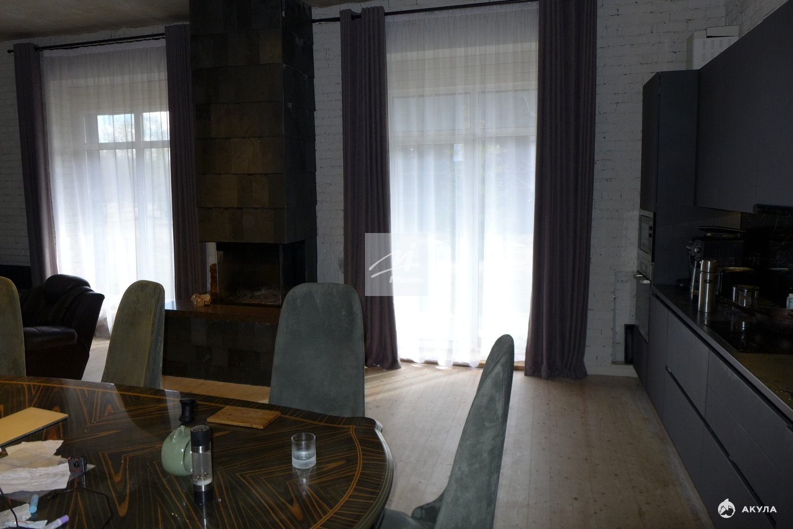 В охраняемом коттеджном поселке продается жилой 2-этажный кирпичный коттедж 300м2.. Современный проект. Высота потолков -3.5 м., кухня столовая соединена в единое пространство с гостиной, пять спален, четыре с/узла. Материал стен - кирпич, окна панорамные стеклопакеты, перекрытия - монолит.Поэтажный план:1-этаж: Холл, кухня столовая + гостиная, три спальни, три с/узла, гардеробная, открытые террасы;2-этаж: Холл с выходом на эксплуатируемую кровлю ( площадь 80 м2), две спальни, с/узел, баня с дровяной печью.Продается с мебелью.Коммуникации: электричество 30 квт, канализация - очистные сооружения типа "Топас", вода - скважина, магистральный газ-по границе участка.Участок 8, 5 соток, прямоугольной формы, выровнен, газон.Инфраструктура рядом: Сетевые продуктовые магазины Верный, Перекресток, Пятерочка, детский сад, ясли, новая школа - Лето с бассейном. 15 минут на а/м г. Истра со всей городской инфраструктурой.Условия сделки:Один взрослый собственник, без обременений. свободная продажа.