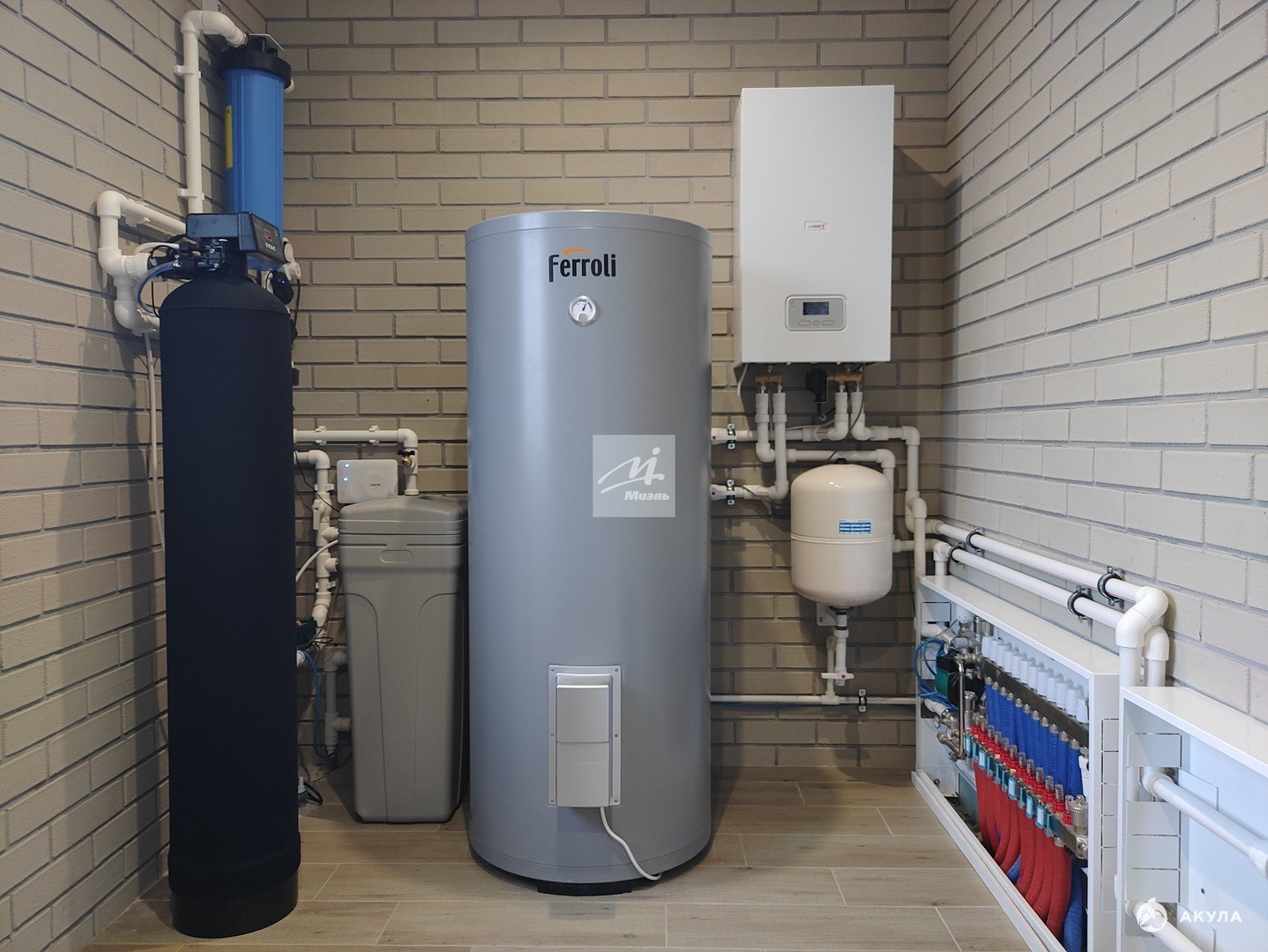 Электричество центральное; отопление - электрокотел, теплые полы по всему дому; вода – скважина; канализация – септик.