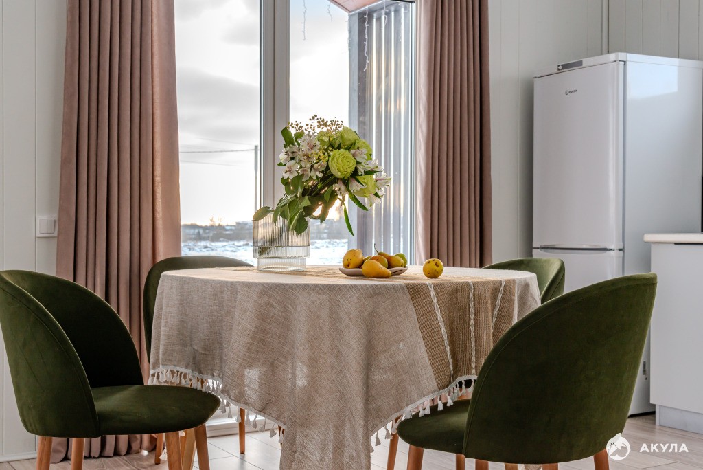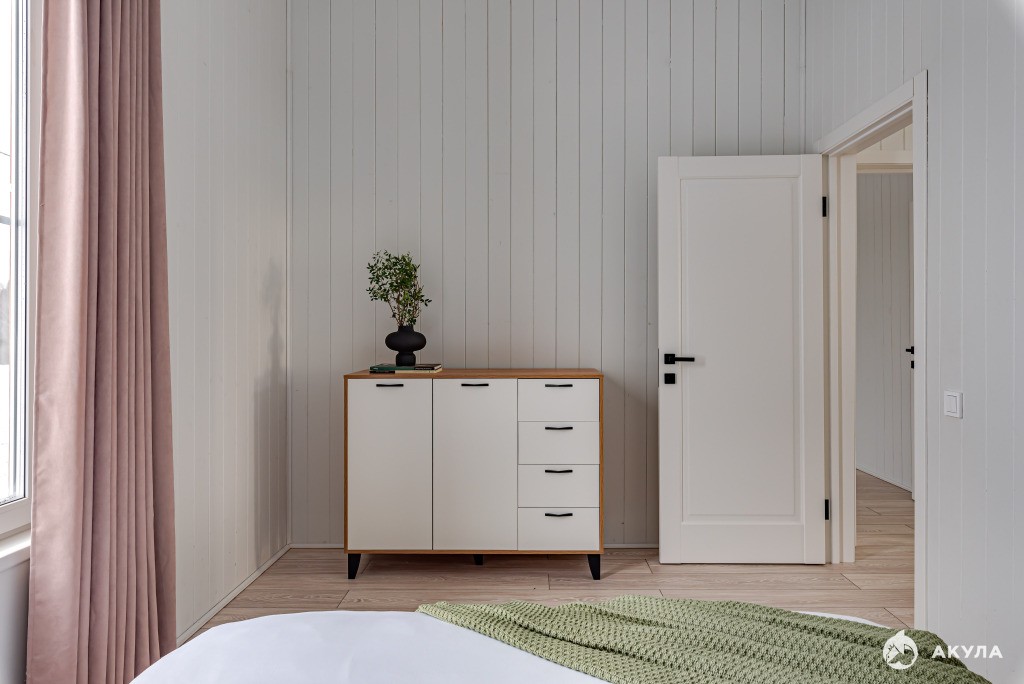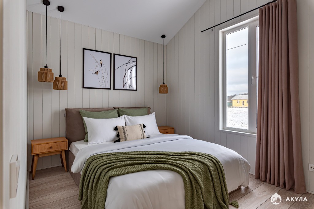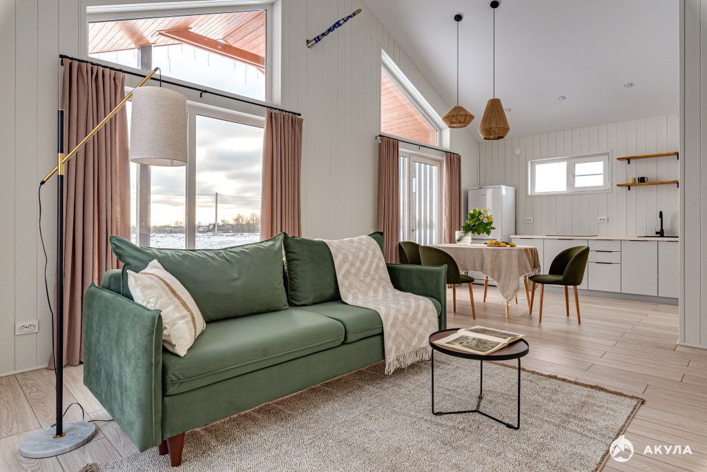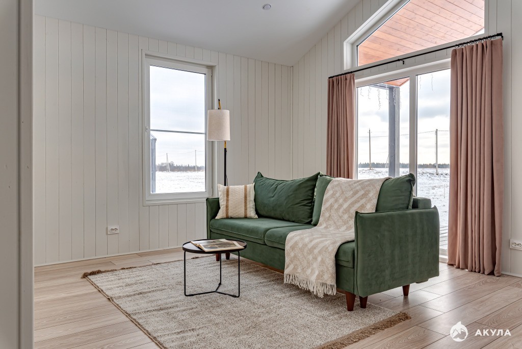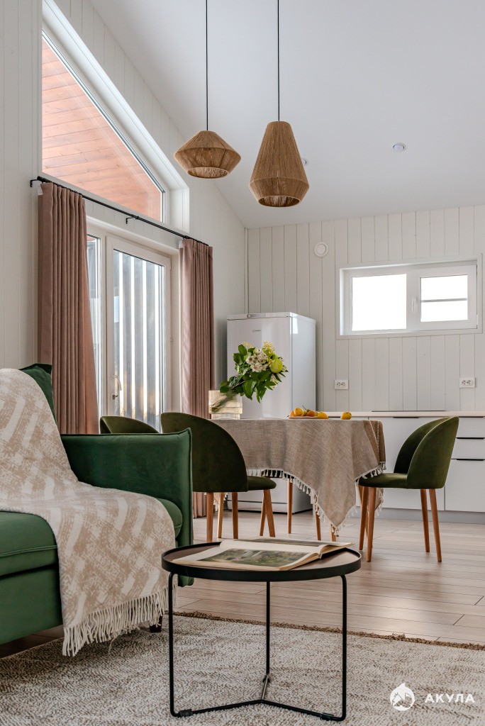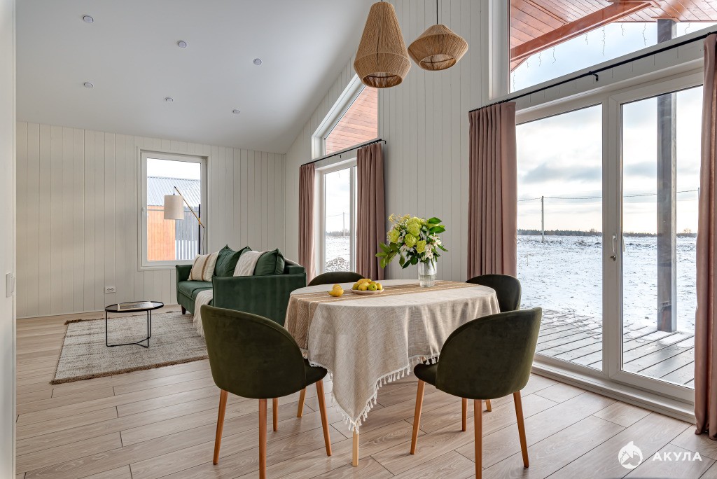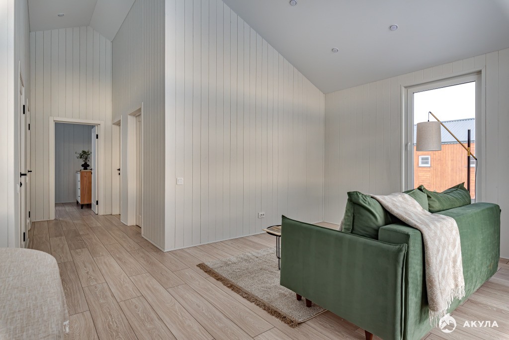 Площадь дома составляет 94, 5 квадратных метра, и в нем продумана каждая деталь для комфорта. В нем две светлые и уютные спальни. Просторная кухня-гостиная с панорамными окнами наполнена светом и воздухом. По всему дому сделаны теплые полы, которые обеспечат тепло зимой и приятную прохладу летом. Установлена современная сантехника, есть ванная комната и отдельная бойлерная. Высокие потолки создают ощущение простора.
