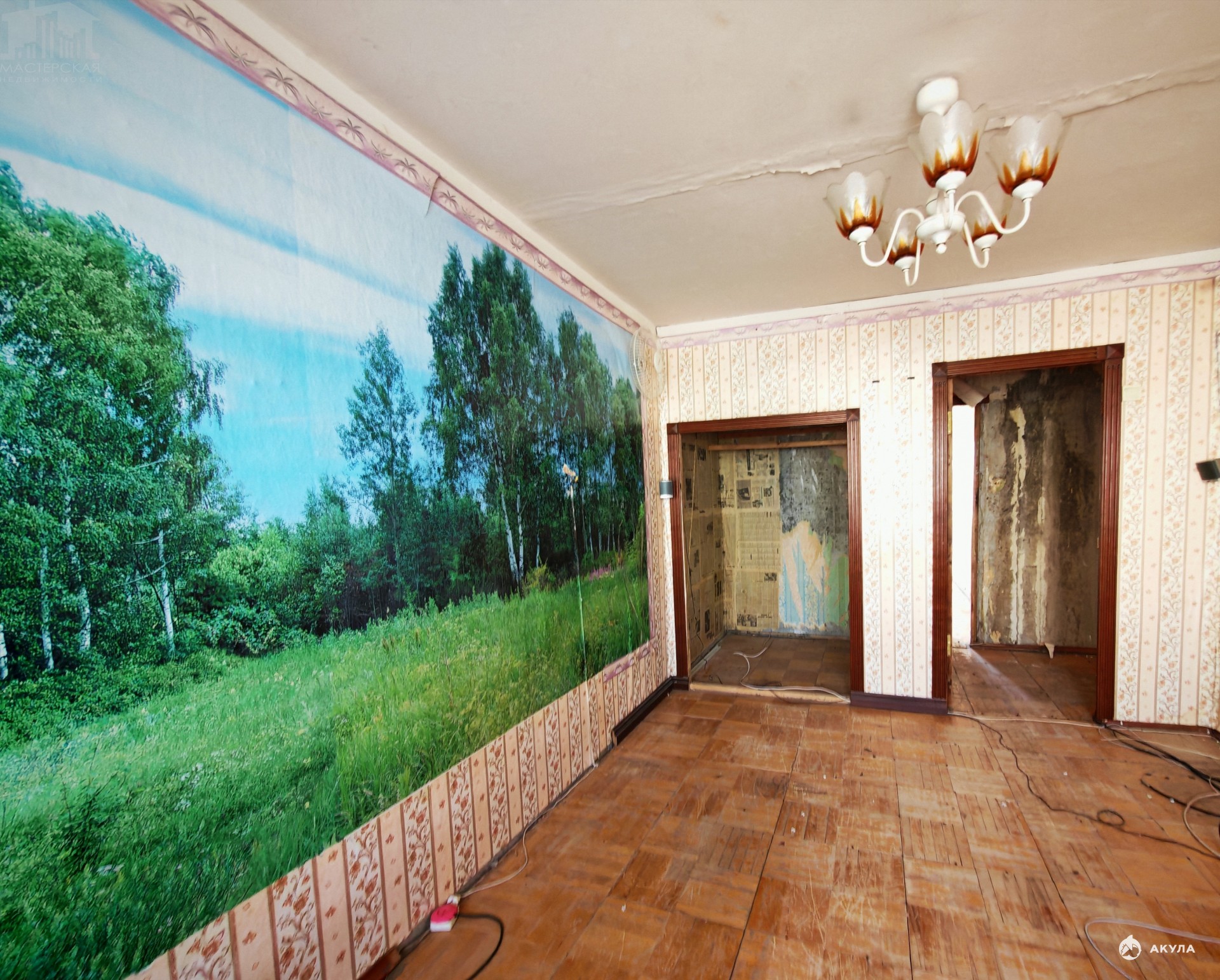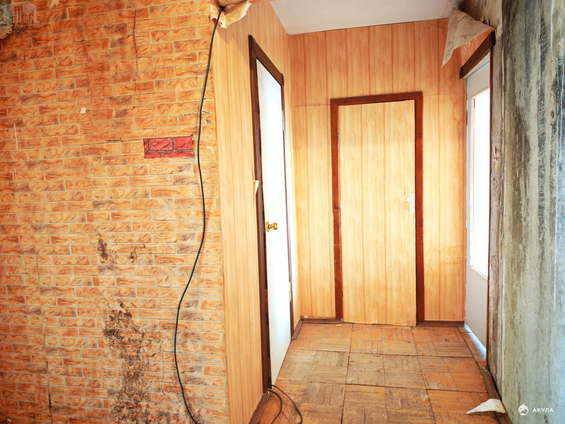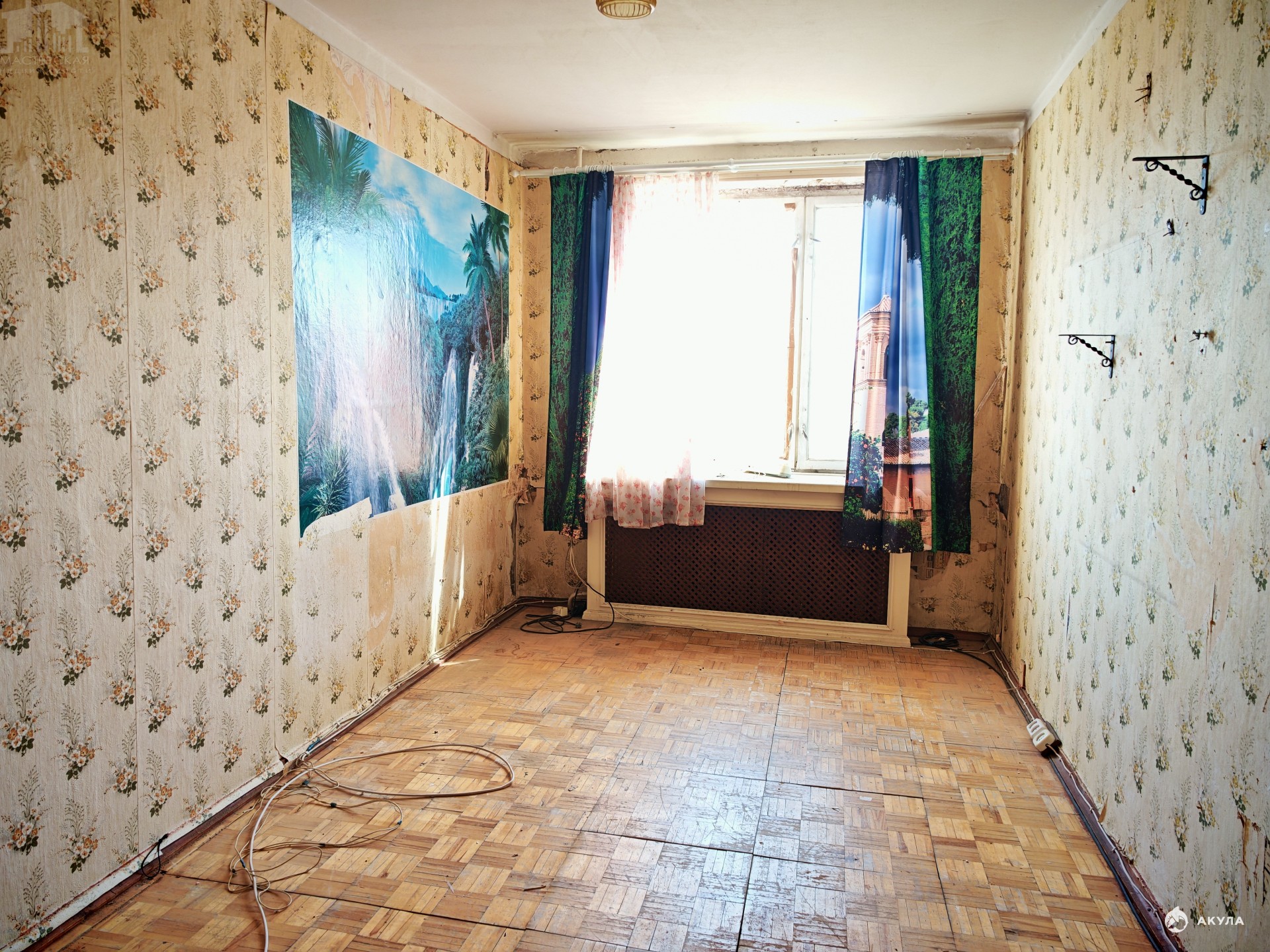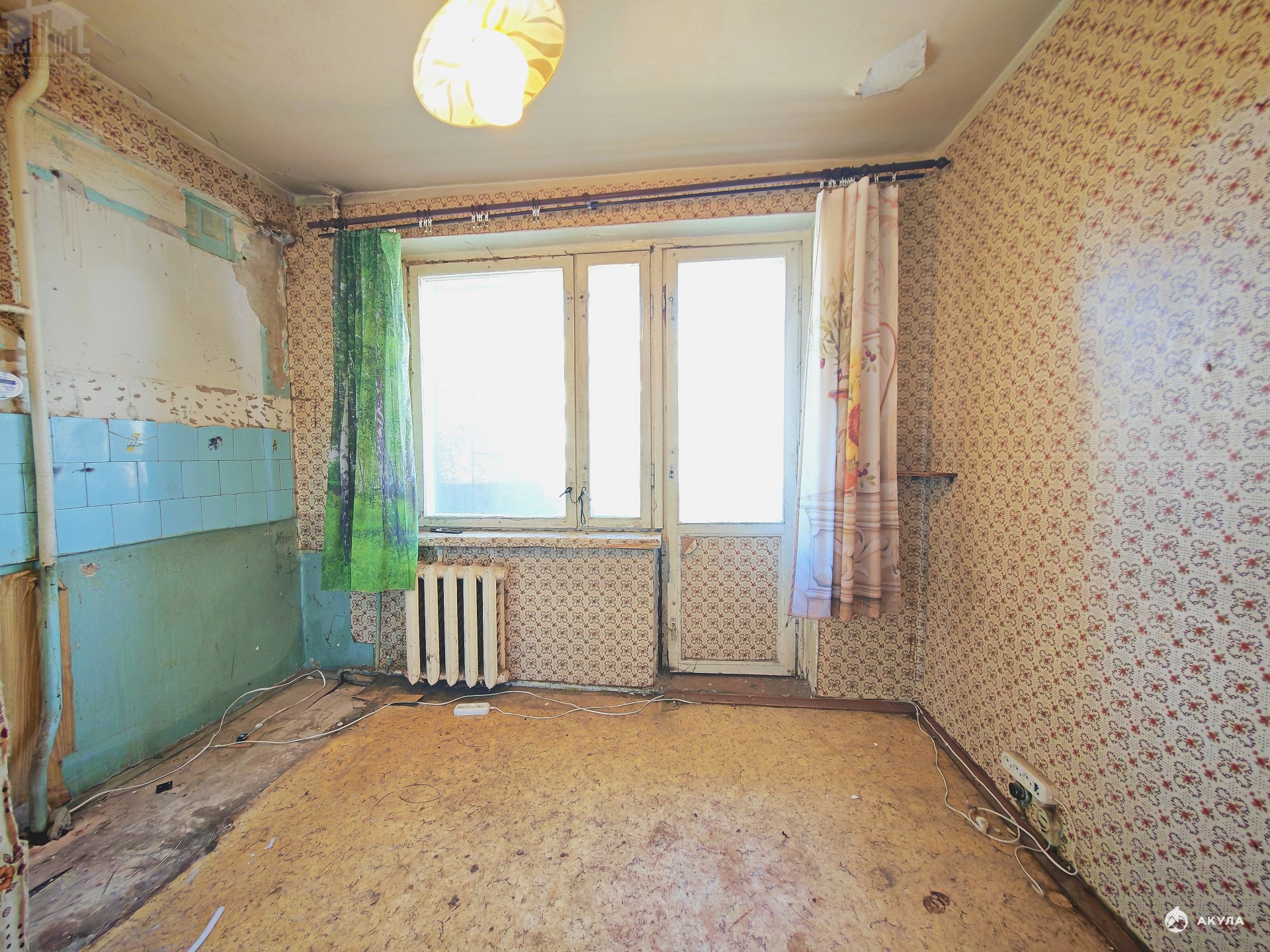 Квартира под ремонт, сухая, без черной плесени, обои частично сняты до бетона, с планировкой комнат "распашонка", кухня 6, 6 кв.м., комнаты 17, 2 и 13, 7 кв. м., большая лоджия, окна выходят по разные стороны дома во двор, гарантируя тишину и спокойствие, окна старые, деревянные. Раздельный санузел. Дом 1983 года постройки.