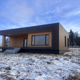 "Дом 78 кв. м. на участке 6 соток в Коттеджном поселке в 55 км от МКАД по новорижскому шоссе. Дом с чистовой отделкой и кухней ПЛАНИРОВКА: - прихожая, - две спальные комнаты, - две гардеробные комнаты, - один санузел, - кухня - гостиная, КОММУНИКАЦИИ: - Газ - Электроэнергия -...